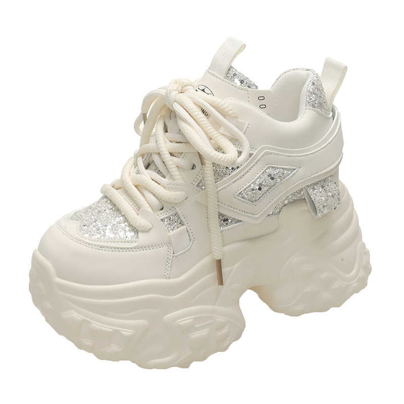Product information: Style: Casual Lining material: cloth Size: 35 37 34 36 38 39 Closing method: lace-up Upper material: PU Shoe Manufacturing Process: glued shoes Style: Dad shoes Heel height: super high heel (greater than 8cm) Heel style: height increasing insole Sole material: Polyurethane Color classification: silver black beige